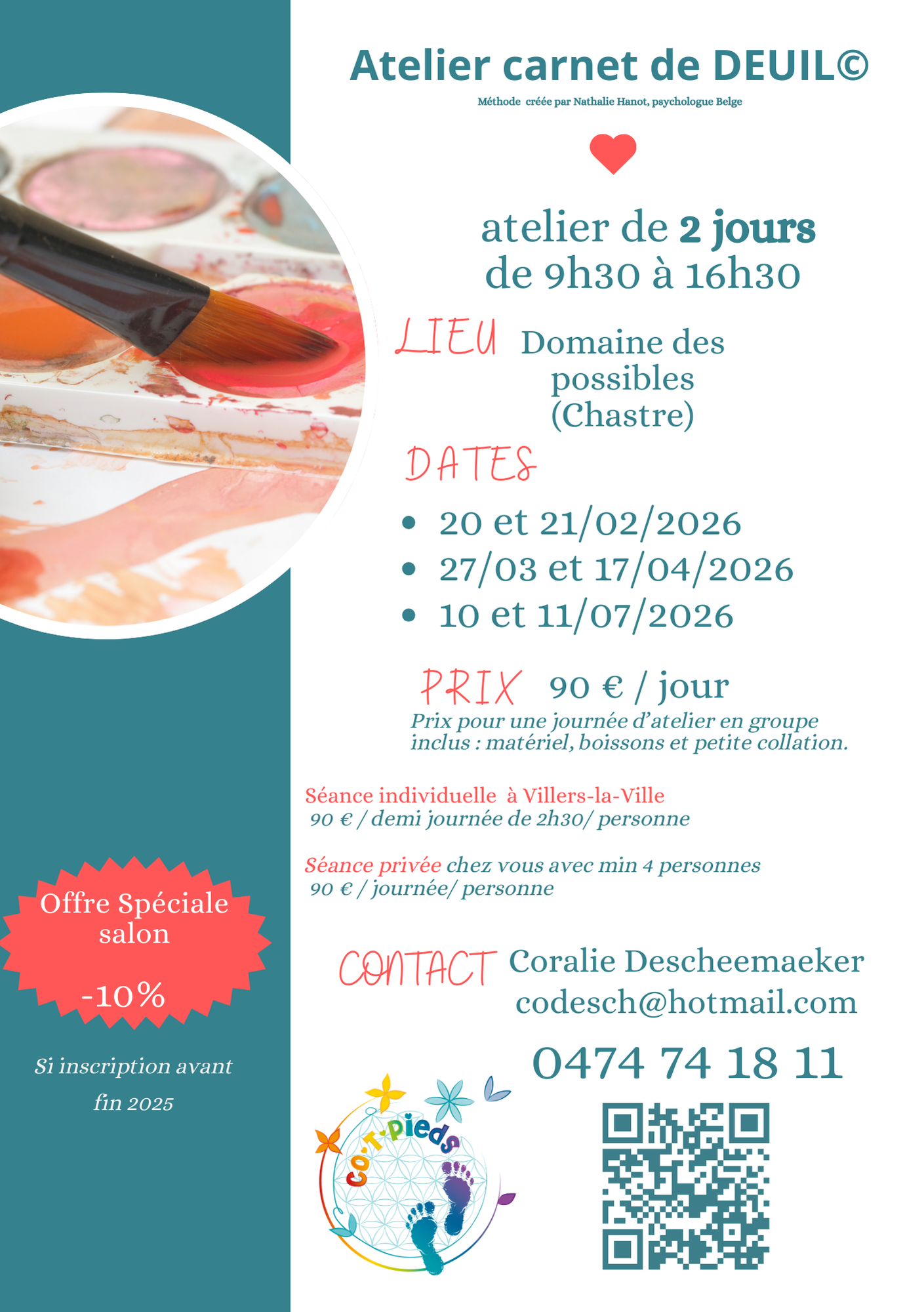 Matériel et petite collation compris. (le prix ne doit pas être un frein à votre participation, n’hésitez pas à me contacter)