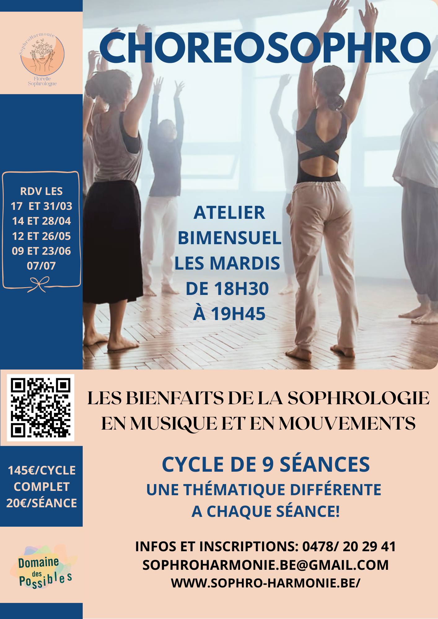 ChoreoSophrologie ???La ChoreoSophrologie est une adaptation en mouvements de la Relaxation Dynamique de Caycedo. Grâce à des mouvements dansés et à l’appui sur la sophrologie, cette pratique permet d'approfondir la perception du corps dans la conscience, de retrouver un ancrage profond et d’atteindre un état de bien-être et de stabilité intérieure.Il ne s’agit ni d'un […]