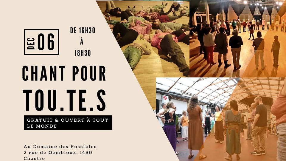 Chant pour Tou.te.s, c'est Gratuit! Inscription : https://www.chantpourtous.com/.../chant-pour-toustes-au.../ Le 06 décembre prochain de 16h30 à 18h30 au Domaine des Possibles, salle de Bal Si tu as envie de chanter en […]