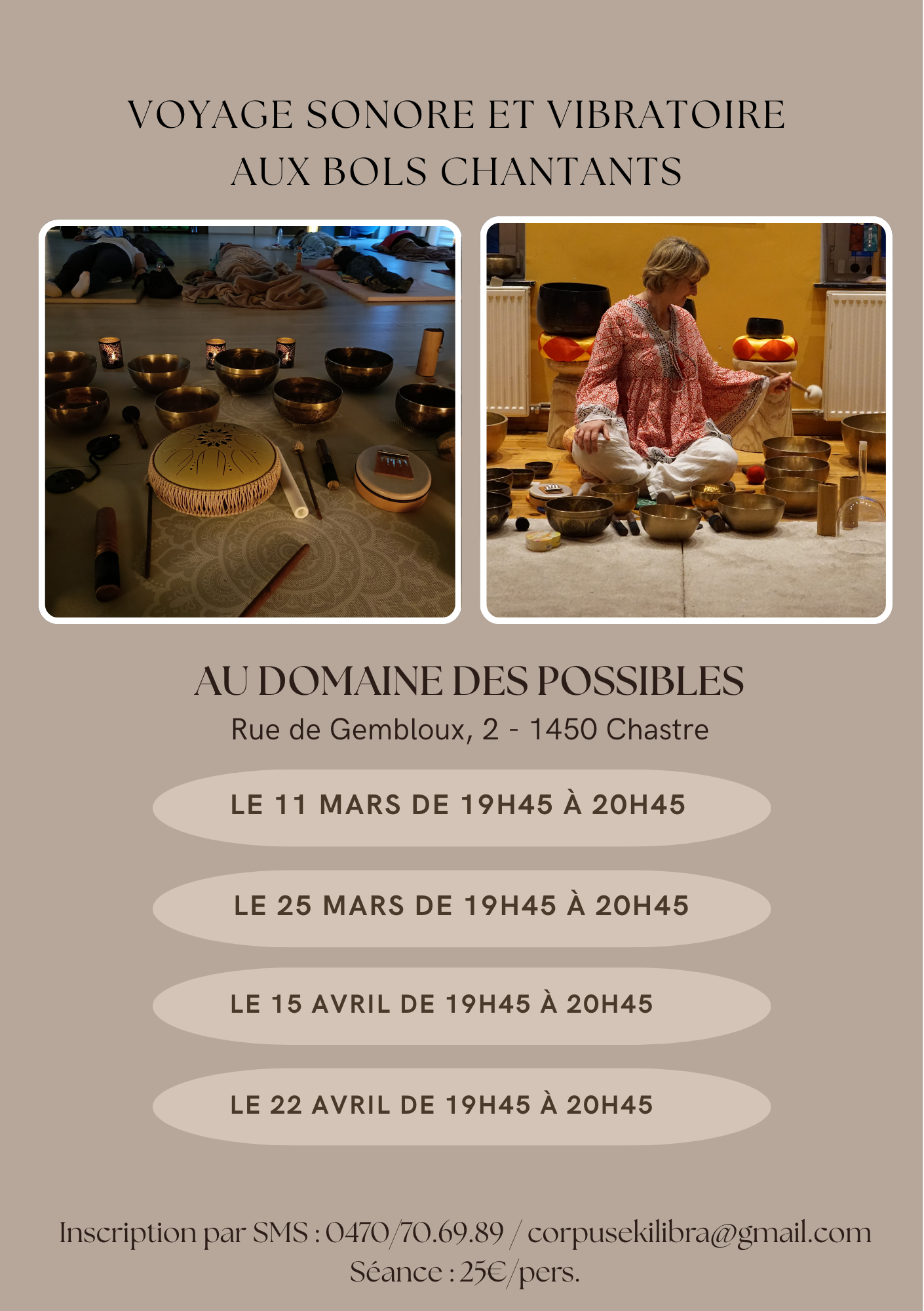Venez vivre un moment de relaxation sonore et vibratoire avec les bols chantants, les koshis, le bâton de pluie, la cloche de cristal,… Vous ressentirez une détente profonde, un calme […]
