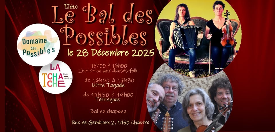 17ème Bal des Possibles https://www.trois-quatre.art/le-bal-des-possibles Le dimanche 28 Décembre 2025 15h00 - 16h00 Initiation aux danses Folk16h00 - 17h30 Ultra Tagada17h45 - 19h15 Tetragone Bal au chapeau Au Domaine Des […]