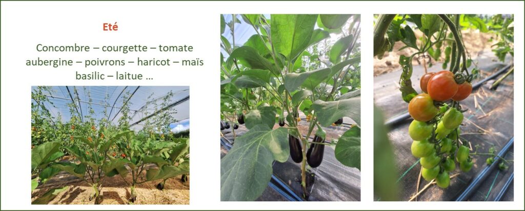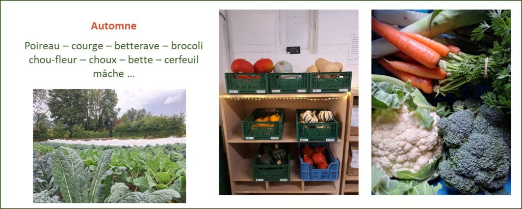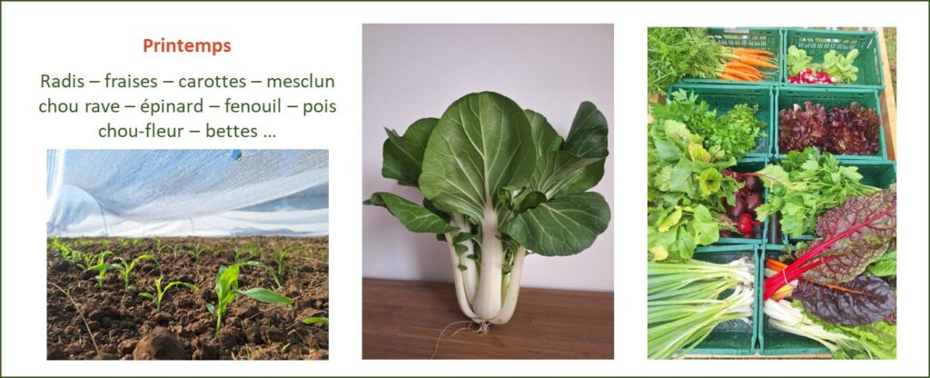 Tout au long de l’année, une cinquantaine de variétés de légumes et aromatiques sont cultivés. Voici un aperçu, non exhaustif, des légumes disponibles au fil des saisons (photos de la saison 2025).